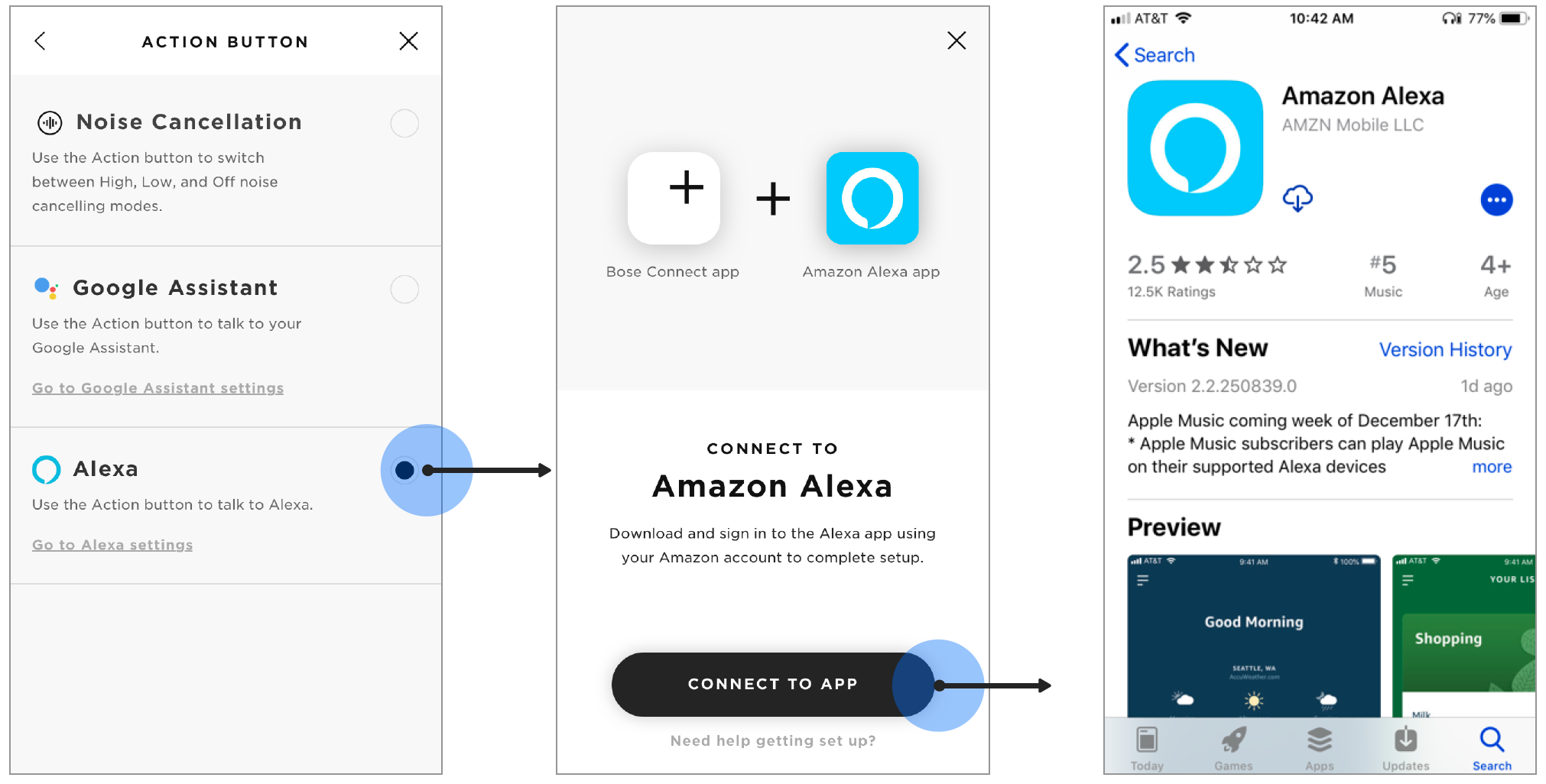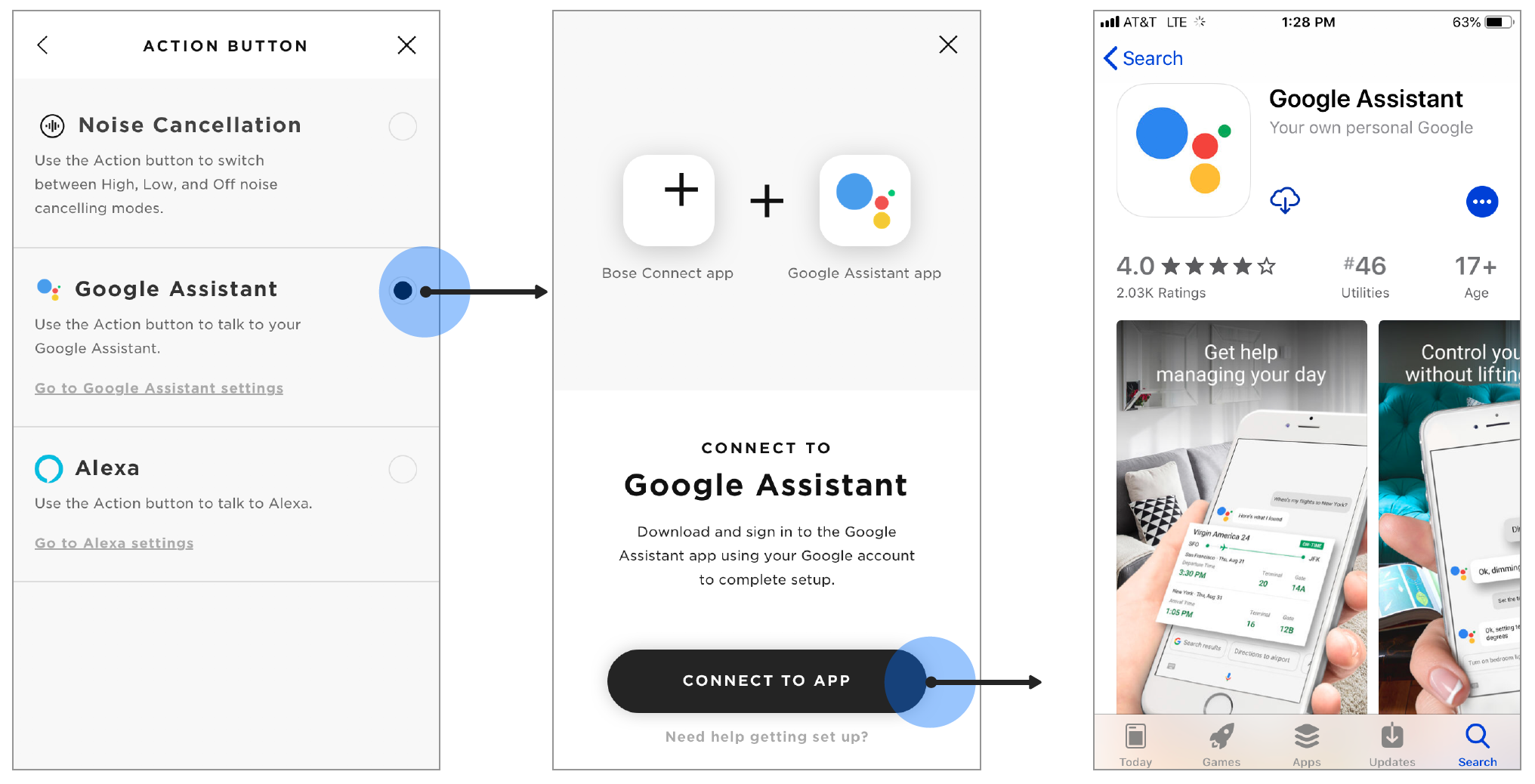 Leveraging a partnership with Localytics, Bose has enabled customer communications through In-App Messages and Push Notifications. The first message tested in Bose Connect demonstrated the customer value of adopting a voice assistant for use with Quiet Comfort 35 II.